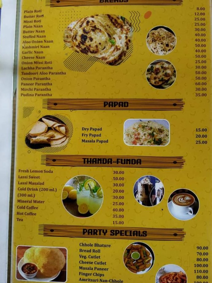 Shreeji Bhojanalaya on GT Road is the go-to spot for an unlimited vegetarian thali loaded with dal makhani, paneer butter masala, and freshly baked tandoori roti; locals swear by their ghee-soaked phirnee that finishes the meal on a sweet note.